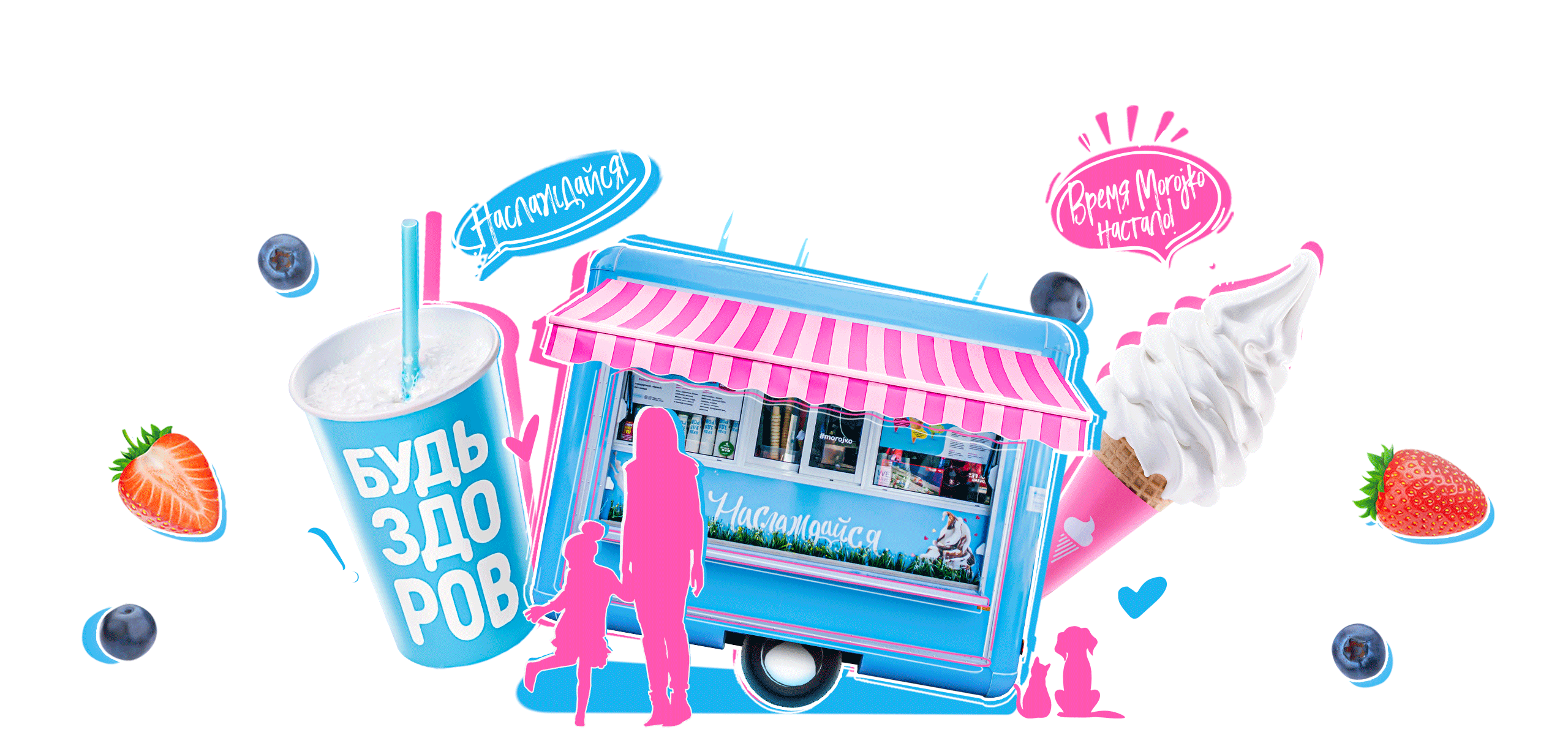 Сливочное Morojko с ягодным топпингом, свежей клубникой